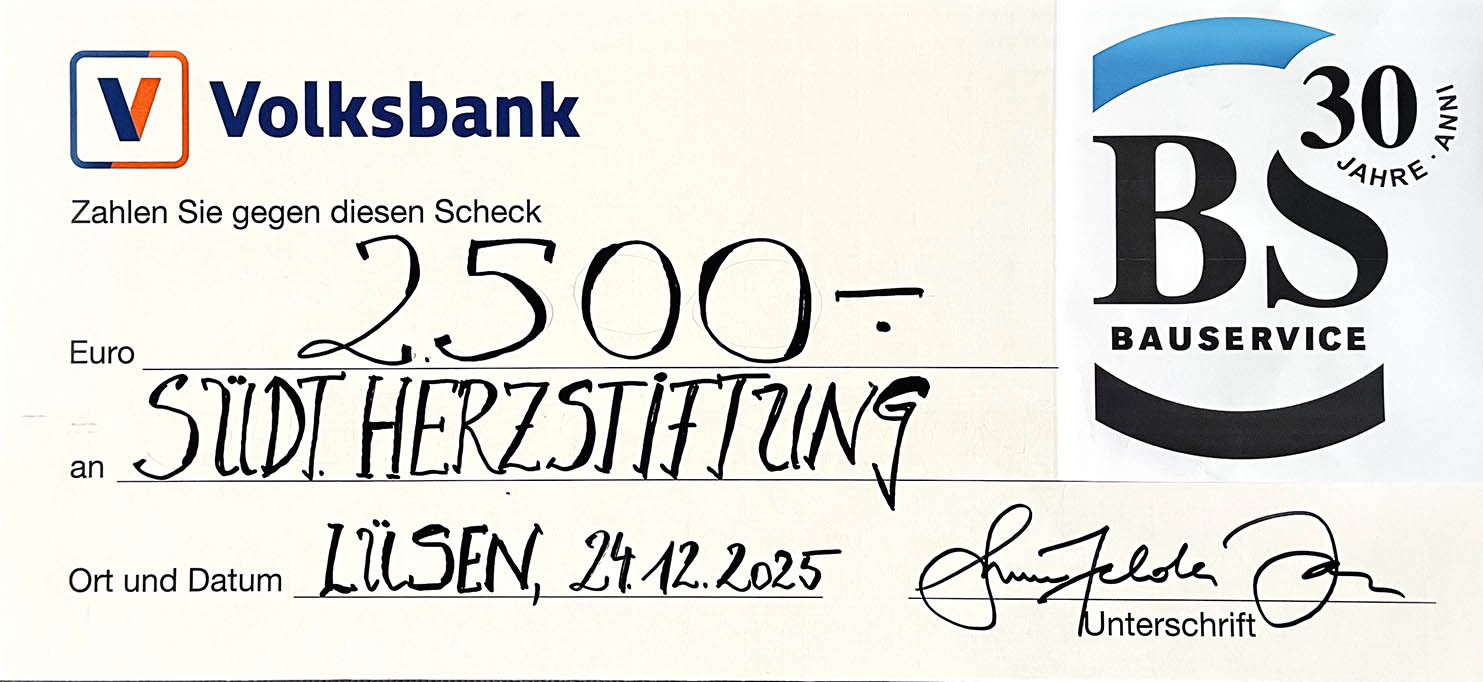 Questa donazione significa molto per noi. Ci permette di ampliare ulteriormente i nostri progetti per la riabilitazione delle persone cardiopatiche in Alto Adige e di migliorare continuamente la qualità e la varietà dei nostri gruppi di ginnastica cardiaca. In questo modo, Bauservice fornisce un prezioso contributo alla promozione della salute, della qualità della vita e dell’assistenza post-terapeutica sostenibile per le persone colpite.